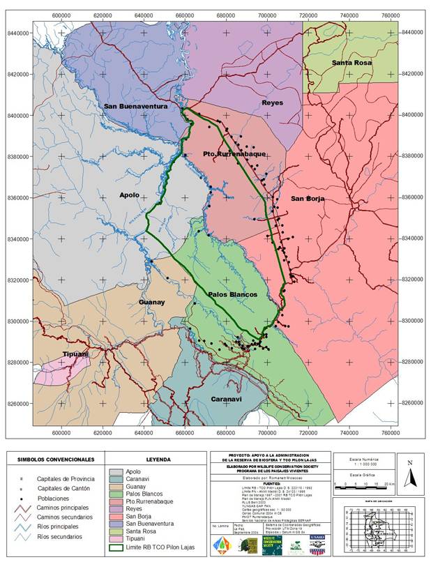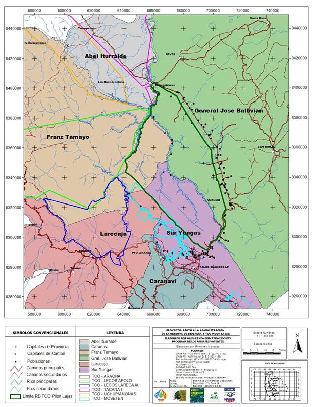 Mapa SEQ Mapa \* ARABIC 1. Ubicación de la RB-TCO Pilón Lajas y límites de Provincias Departamentales